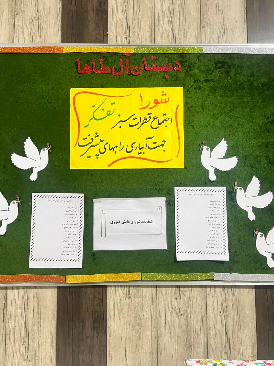 انتخابات شورای دانش آموزی دبستان پسرانه آل طه ۲۰ آبان برگزار و نتیجه اعلام شد.انتخابات شورای دانشآموزی دبستان پسرانه آلطه در تاریخ ۲۰ آبان با حضور پرشور دانشآموزان برگزار شد. روند انتخابات مطابق با شیوهنامه آموزش و پرورش و با هدف تقویت روحیه مشارکتجویی، مسئولیتپذیری و تمرین دموکراسی در میان دانشآموزان انجام گرفت.