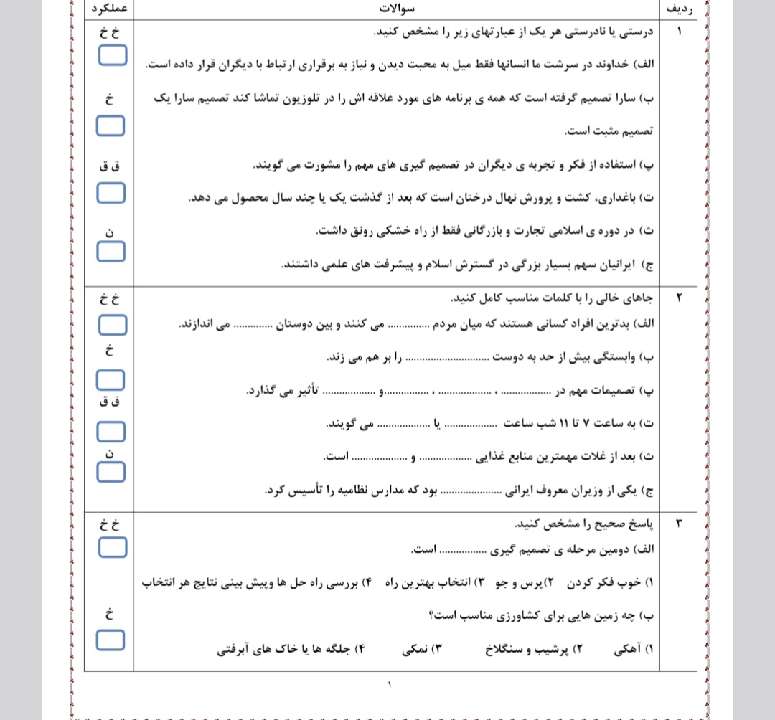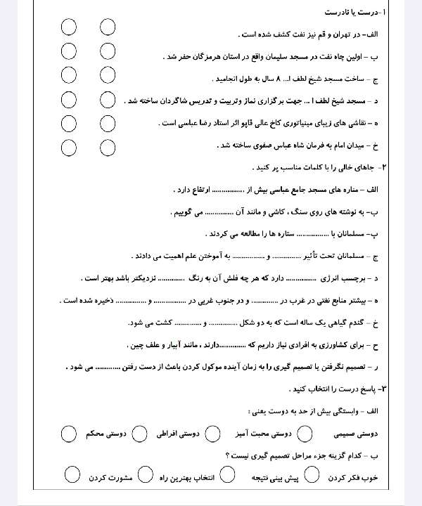 کاربرگ آزمون اجتماعی
