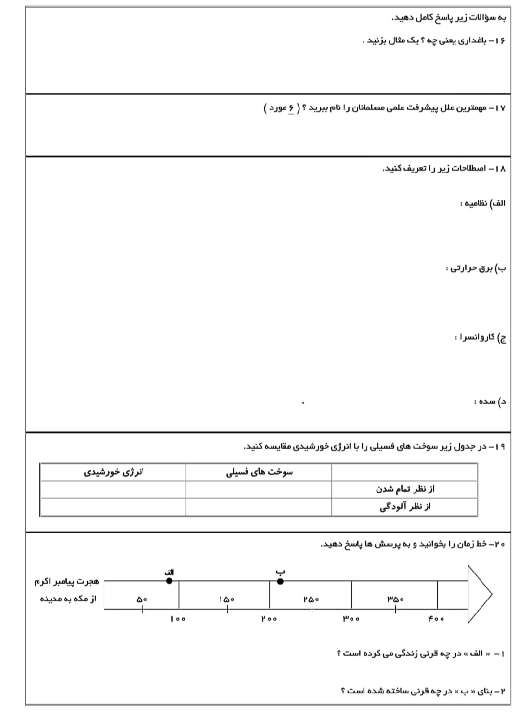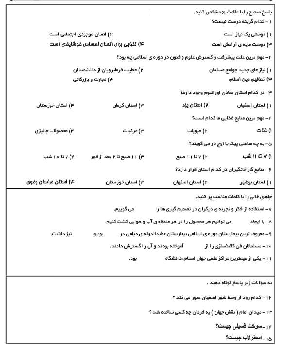 کاربرگ علوم ،اجتماعی، هدیهکاربرگ تمرینی